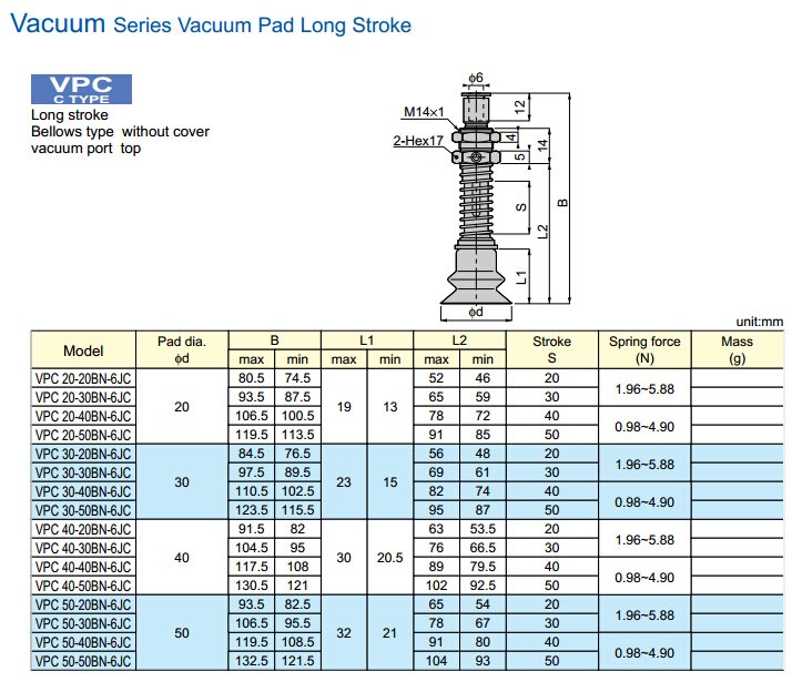 VPC30-30AN-6JC,VPC30-40AN-6JC,VPC30-50AN-6JC,VPC40-30AN-6JC,VPC25-50AN-6JC,