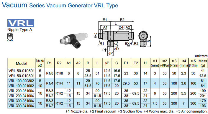 VRL50-010601,VRL100-020802,VRL200-031004,VRL300-031004,VRL50-010801,VRL100-021002,PISCO真空發(fā)生器