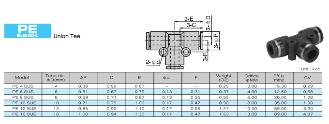 PE4SUS,PE6SUS,PE8SUS,PE10SUS,PE12SUS,PE16SUS,PISCO快速接頭