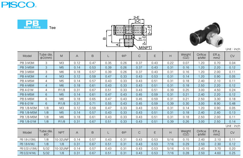 PB3-M3M,PB4-M3M,PB6-M5M,PB1/8-M3M,PB1/8-N1MU,PB5/32-U10MU,PB6-01M |
