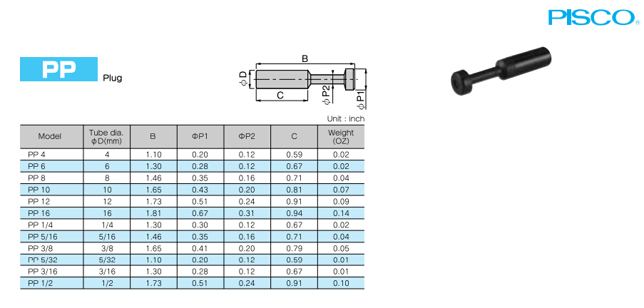 PP4,PP6,PP8,PP10,PP12,PP16,PP1/4,PP5/16,PP3/8,PP5/32,PP3/16,PP1/2 |