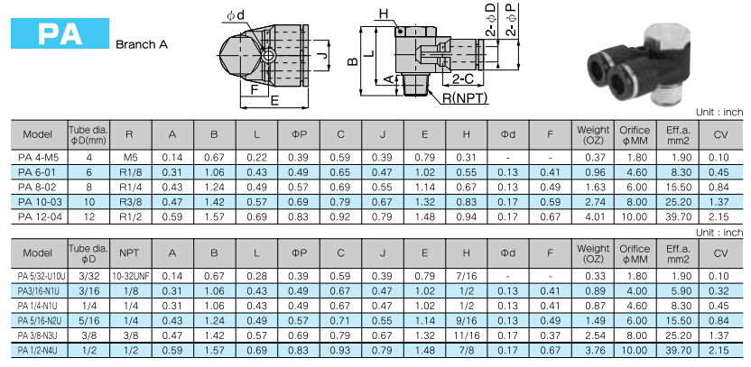 PA5/32-U10U,PA3/16-N1U,PA1/4-N1U,PA5/16-N2U,PA3/8-N3U,PA1/2-N4U |