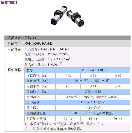 RAF-40,RAF-63,RAF-80,RAH-40,RAH-63,RAH-80,RAH-D-40,RAH-D-63,RAH-D-80,POSU回轉(zhuǎn)氣缸