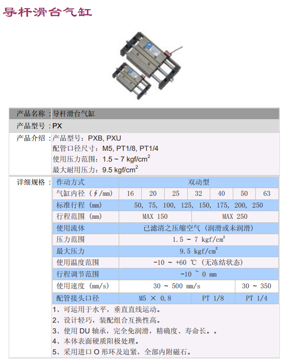 PXB-16*50,PXB-20*50,PXB-25*50,PXB-32*50,PXB-40*50,PXB-50*50,PXB-63*50,POSU導(dǎo)桿滑臺氣缸 |