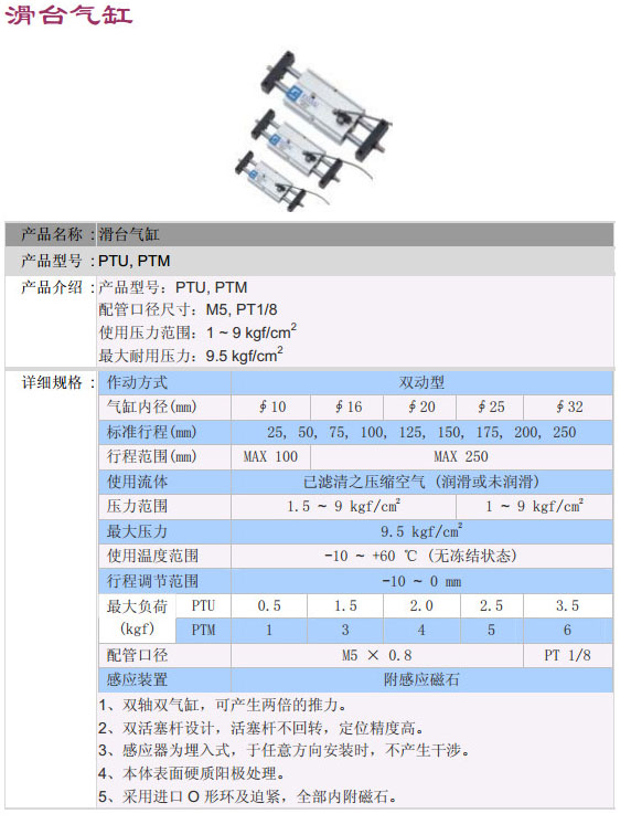 PTU-10*25,PTU-16*25,PTU-20*25,PTU-25*25,PTU-32*25,PTM-10*25,PTM-16*25,PTM-20*25,PTM-25*25,POSU滑臺氣缸 |