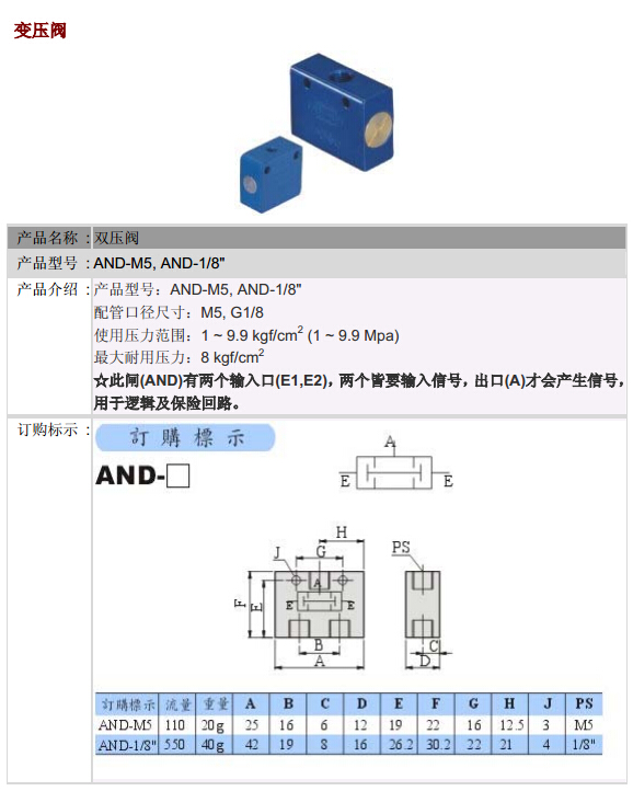 AND-M5,AND-1/8",POSU雙壓閥