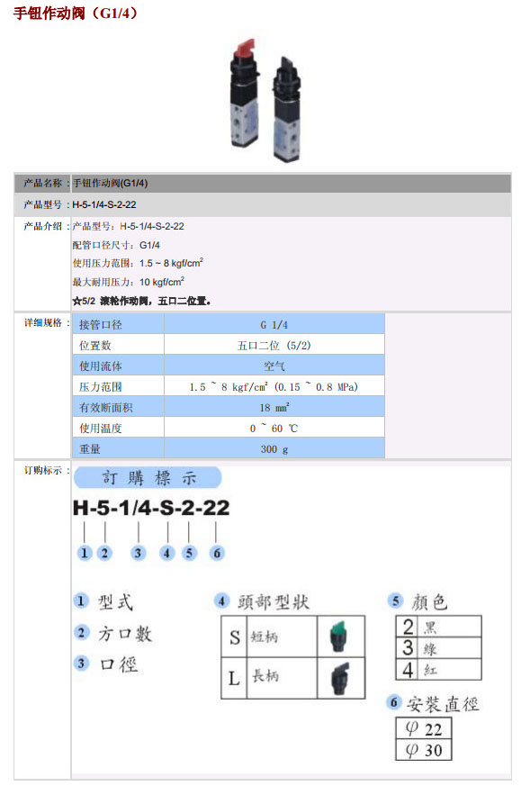 H-5-1/4-S-2-22,POSU手鈕作動閥