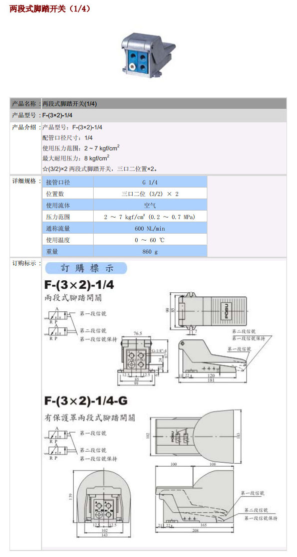 F-(3×2)-1/4,F-(3×2)-1/4-G,PST腳踏開關