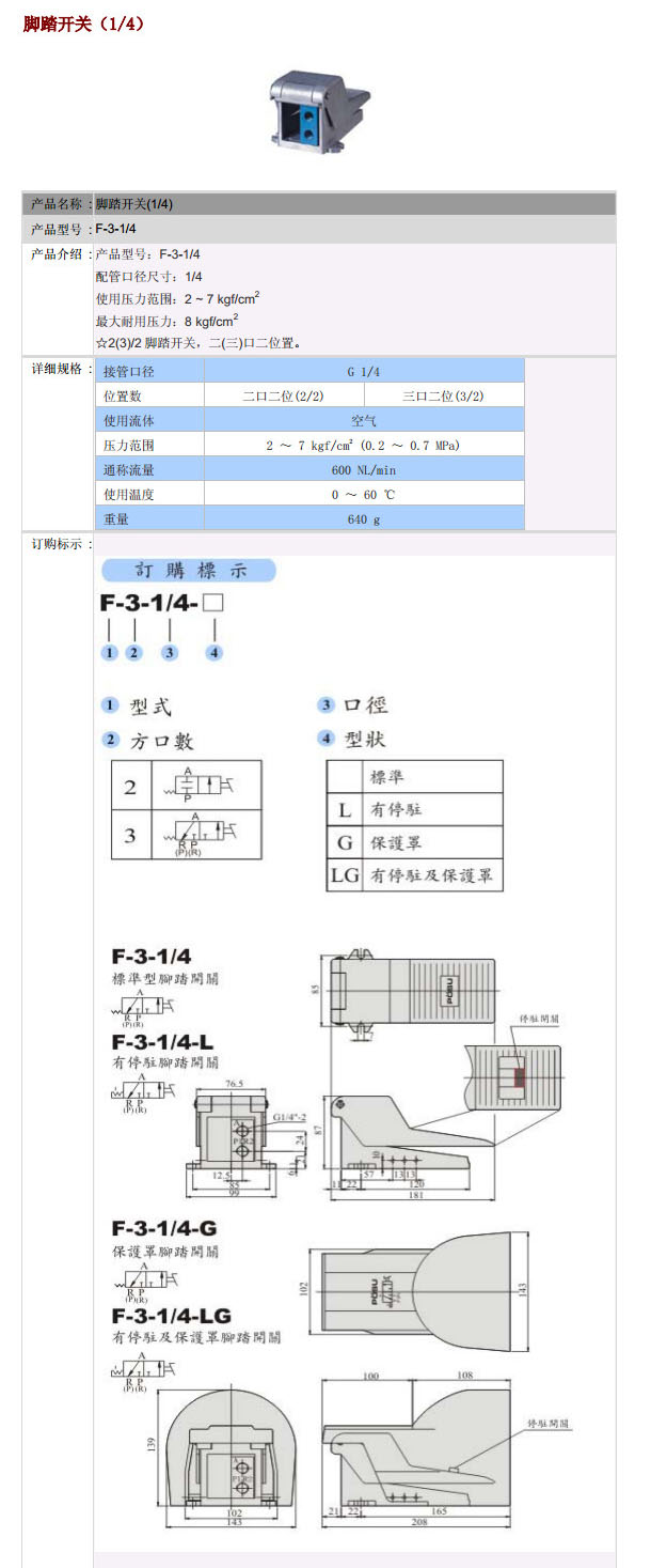 F-3-1/4,F-3-1/4-L,F-3-1/4-G,F-3-1/4-LG,PST腳踏開關(guān) |