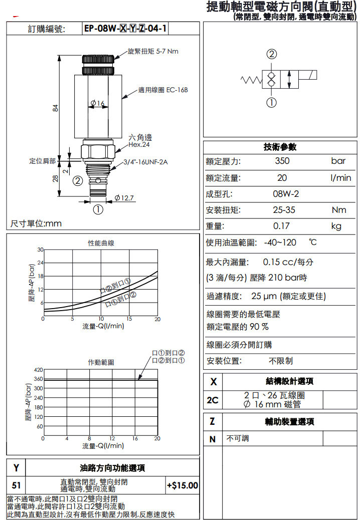 EP-08W-2C-51-N-04-1,winner提動軸型電磁方向閥