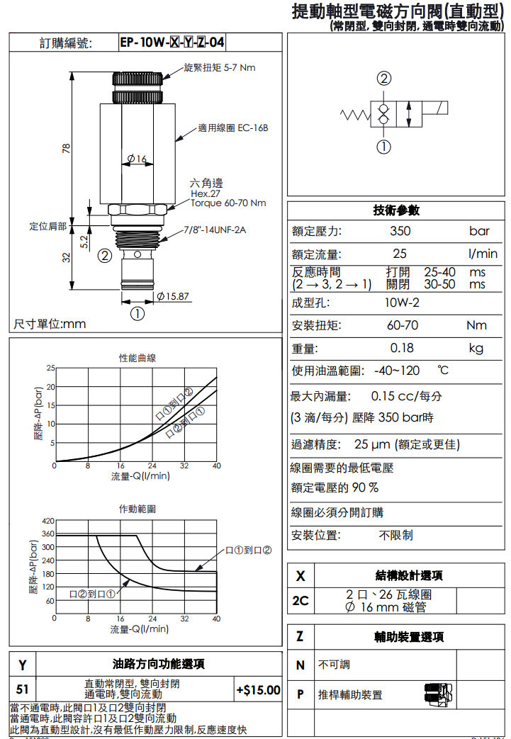EP-10W-2C-51-N-04,EP-10W-2C-51-P-04,winner提動軸型電磁方向閥