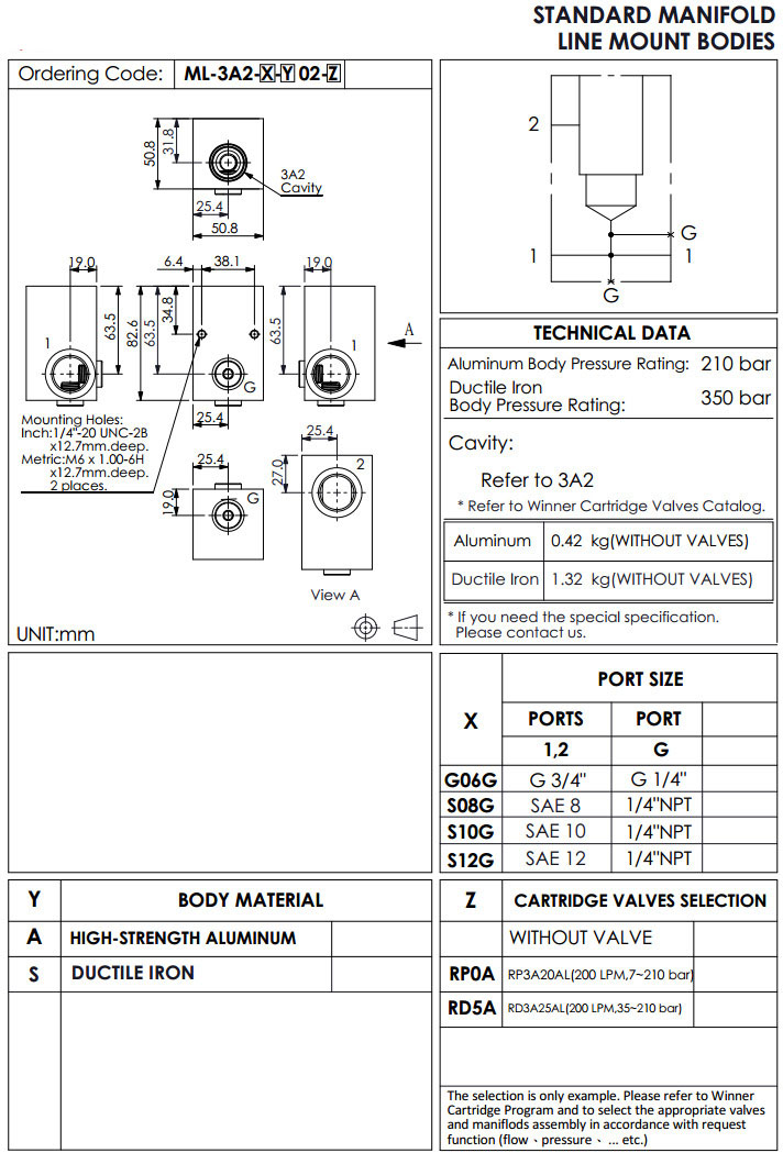 ML-3A2-G06G,ML-3A2-S08G,ML-3A2-S10G,ML-3A2-S12G,winner標準配管式油路板 |