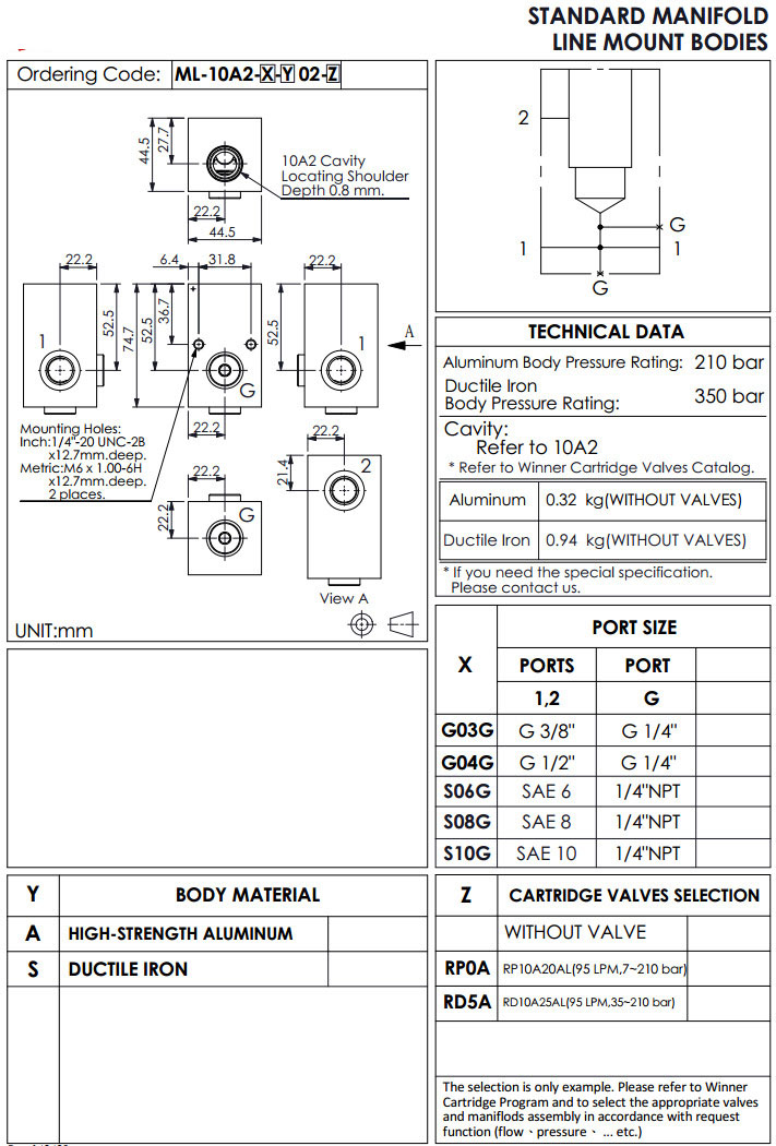 ML-10A2-G03G,ML-10A2-G04G,ML-10A2-S06G,ML-10A2-S08G,ML-10A2-S10G,winner標(biāo)準(zhǔn)配管式油路板