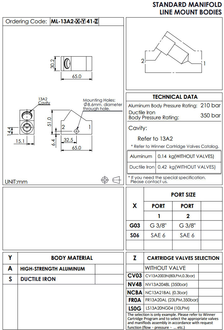 ML-13A2-G03-A41-CV03,ML-13A2-P03-A41-CV03,ML-13A2-A03-A41-CV03,ML-13A2-S06-A41-CV03,winner標(biāo)準(zhǔn)配管式油路板