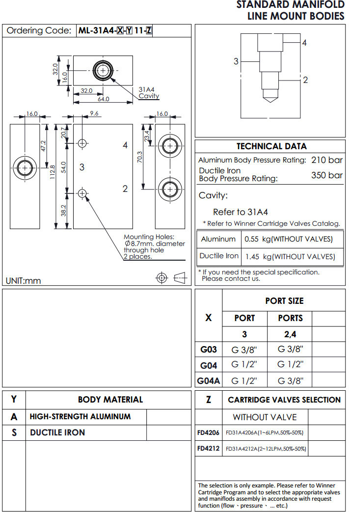 ML-31A4-G03-A11-FD4206,ML-31A4-G04-A11-FD4206,ML-31A4-G04A-A11-FD4206,winner標(biāo)準(zhǔn)配管式油路板 |