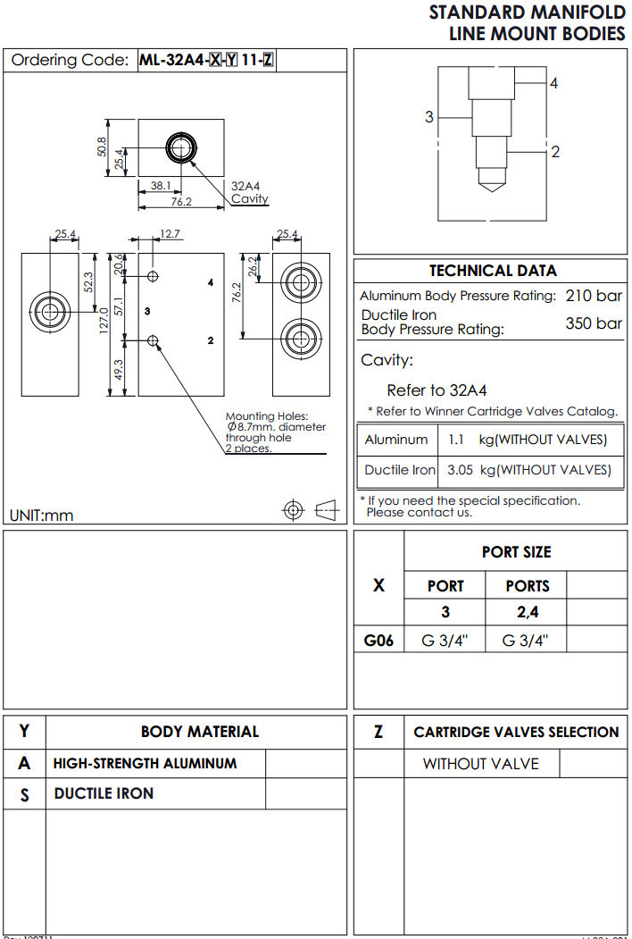 ML-32A4-G06-A11,ML-32A4-S06-A11,winner標(biāo)準(zhǔn)配管式油路板