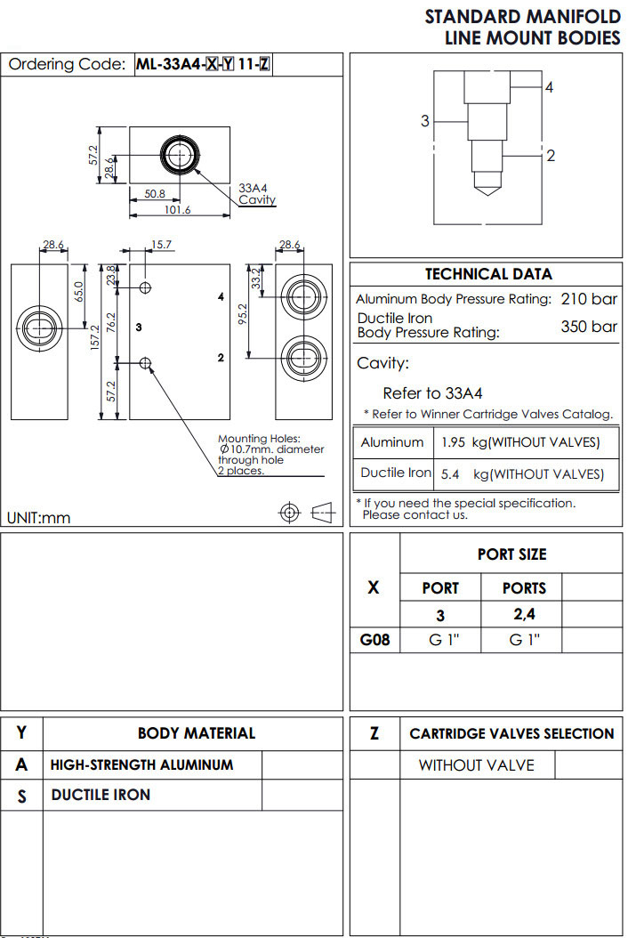 ML-33A4-G08-A11,ML-33A4-S08-A11,winner標(biāo)準(zhǔn)配管式油路板