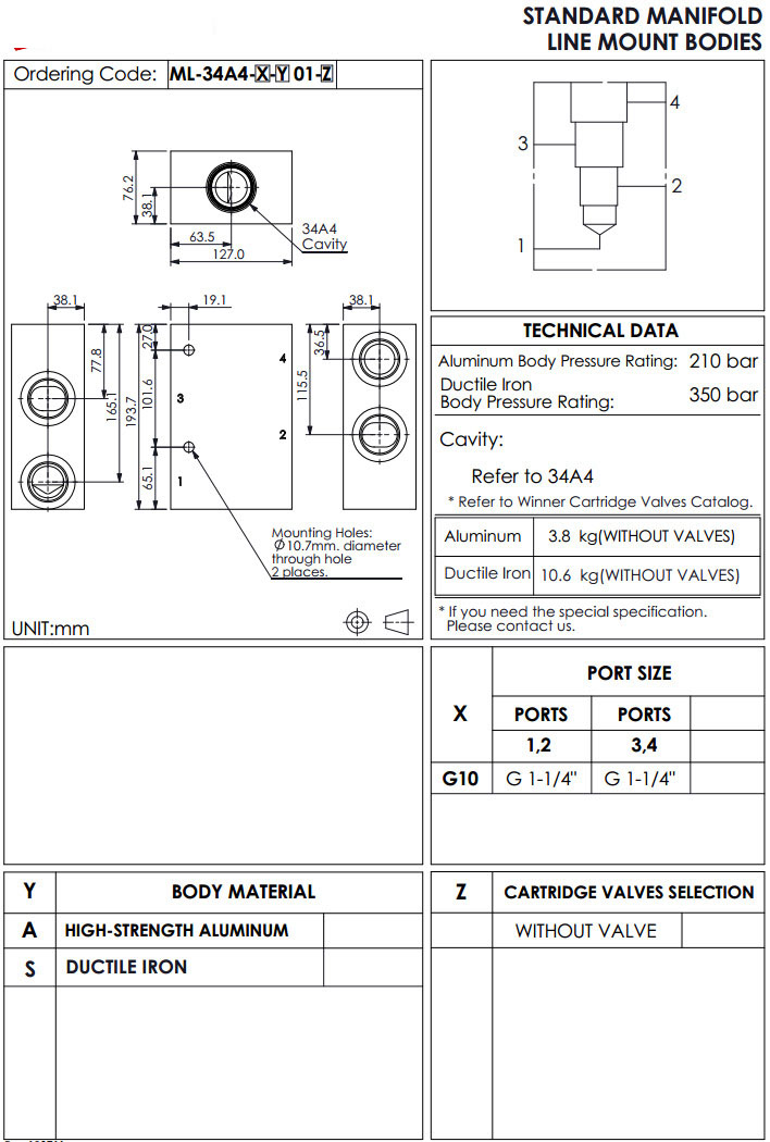 ML-34A4-G10-A01,ML-34A4-S10-A01,winner標準配管式油路板