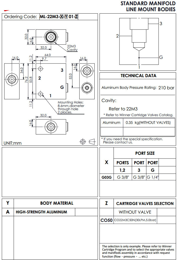 ML-22M3-G03G-A01-CO50,winner標(biāo)準(zhǔn)配管式油路板
