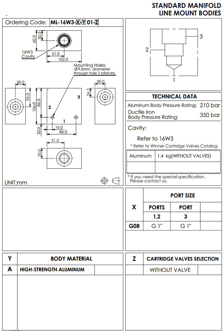 ML-16W3-G08-A01,winner標準配管式油路板