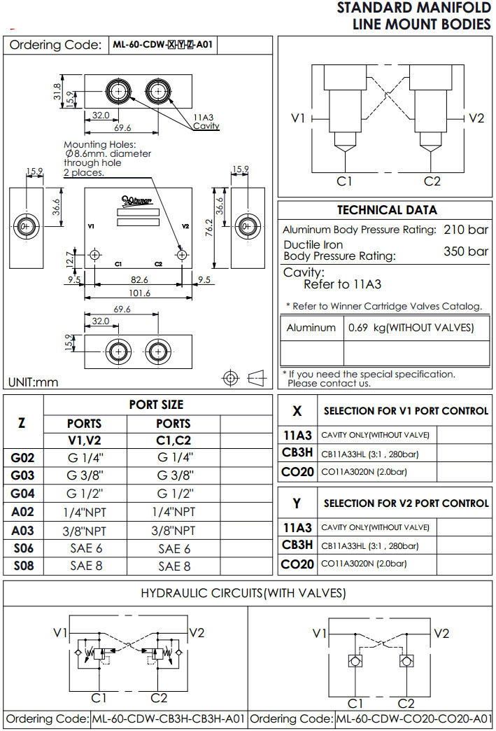 ML-60-CDW-11A3-11A3-G02-A01,ML-60-CDW-CB3H-CB3H-G02-A01,ML-60-CDW-CO20-CO20-G02-A01,winner標(biāo)準(zhǔn)配管式油路板 |