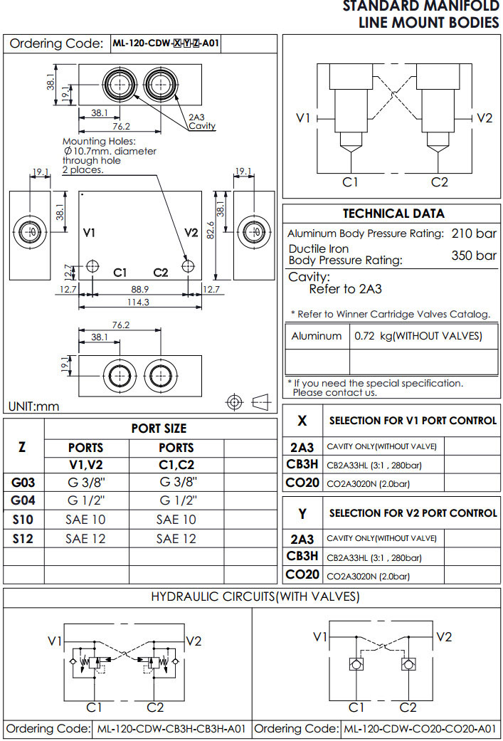 ML-120-CDW-2A3-2A3-G03-A01,ML-120-CDW-CB3H-CB3H-G03-A01,ML-120-CDW-CO20-CO20-G03-A01,winner標準配管式油路板 |