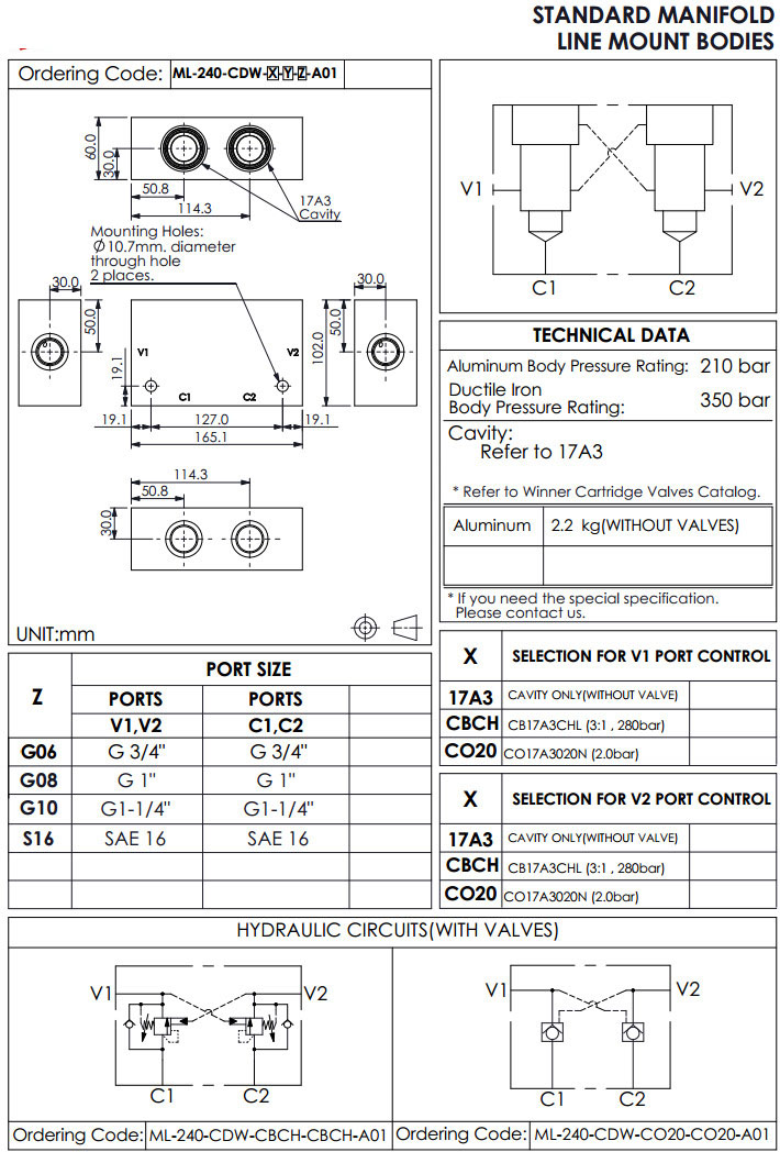 ML-240-CDW-17A3-17A3-G06-A01,ML-240-CDW-CBCH-CBCH-G06-A01,ML-240-CDW-CO20-CO20-G06-A01,winner標(biāo)準(zhǔn)配管式油路板