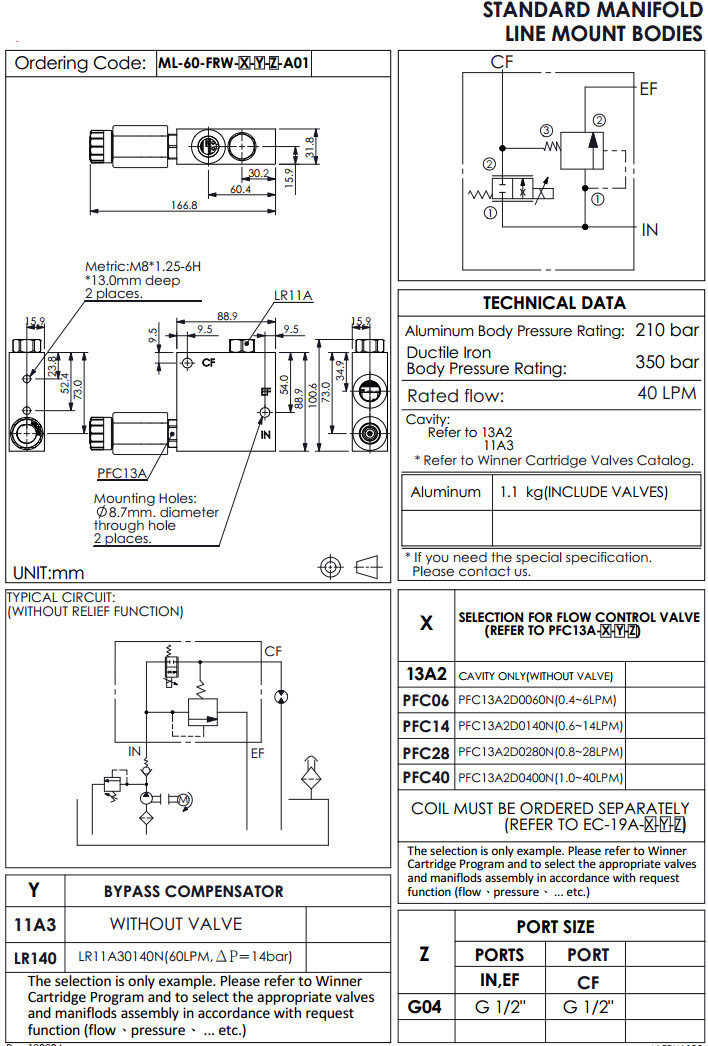 ML-60-FRW-13A2,ML-60-FRW-PFC06,ML-60-FRW-PFC14,ML-60-FRW-PFC28,ML-60-FRW-PFC40,winner標(biāo)準(zhǔn)配管式油路板