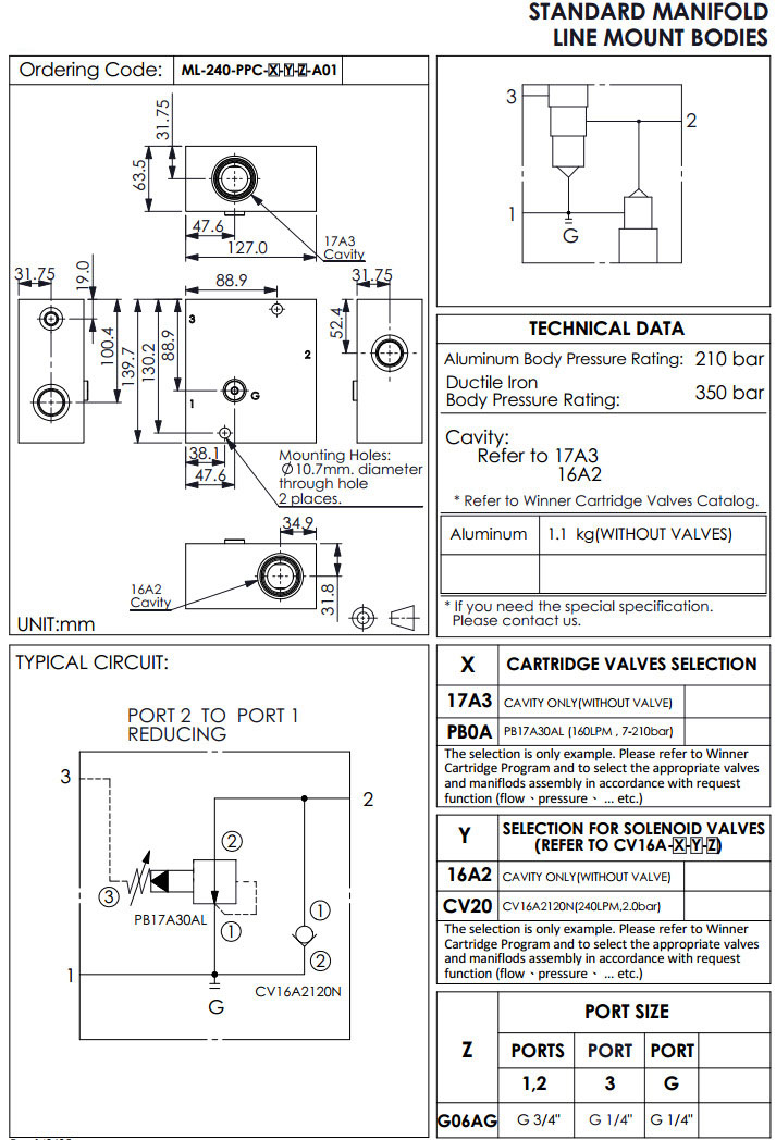 ML-240-PPC-17A3-16A2-G06AG-A01,ML-240-PPC-PB0A-16A2-G06AG-A01,winner標(biāo)準(zhǔn)配管式油路板