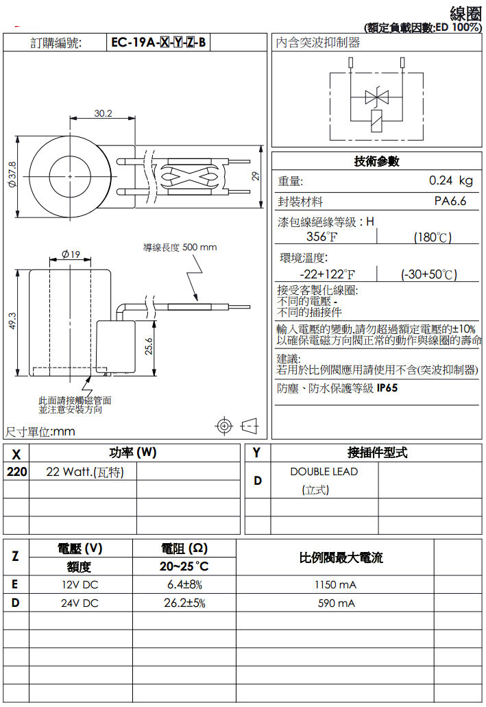 EC-19A-220-D-E-B,EC-19A-220-D-D-B,winner線圈