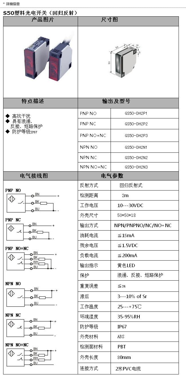 GS50-DH2P1,GS50-DH2P2,GS50-DH2P3,GS50-DH2N1,GS50-DH2N2,GS50-DH2N3,S50光電(回歸反射)