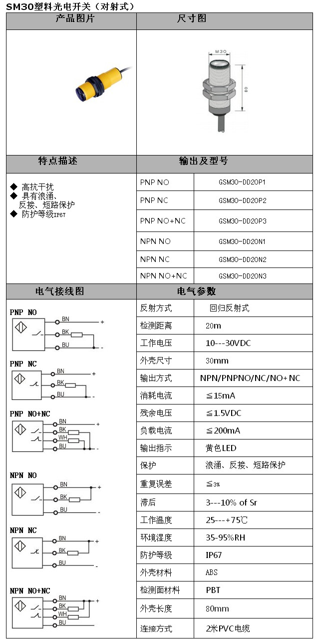 GSM30-DD20P1,GSM30-DD20P2,GSM30-DD20N1,GSM30-DD20N2,GSM30-DD20N3,SM30光電(對(duì)射)