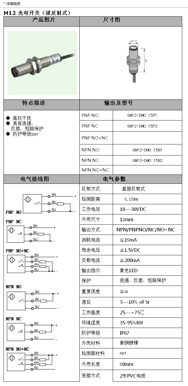 GM12-DM0.15P1,GM12-DM0.15P2,GM12-DM0.15N1,GM12-DM0.15N2,M12光電(漫反射)