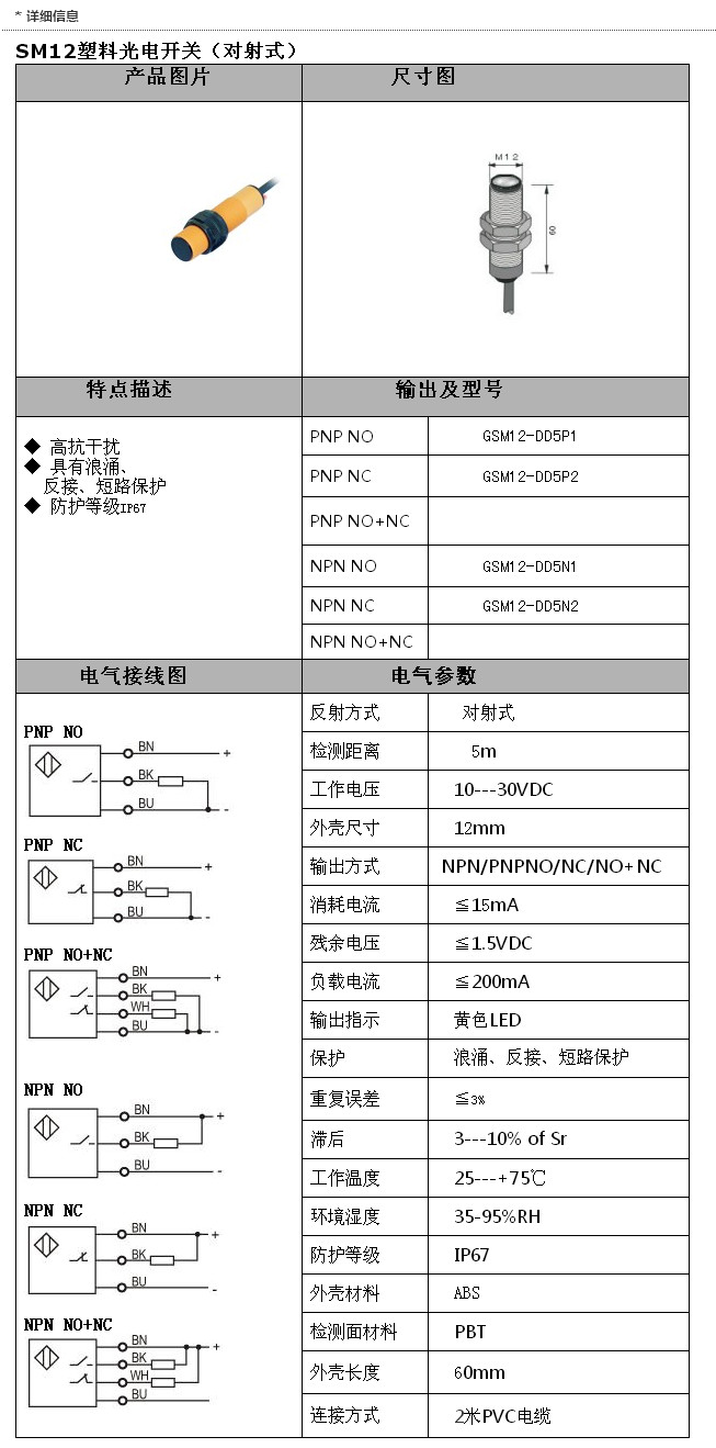 GSM12-DD5P1,GSM12-DD5P2,GSM12-DD5N1,GSM12-DD5N2,SM12光電(對射)