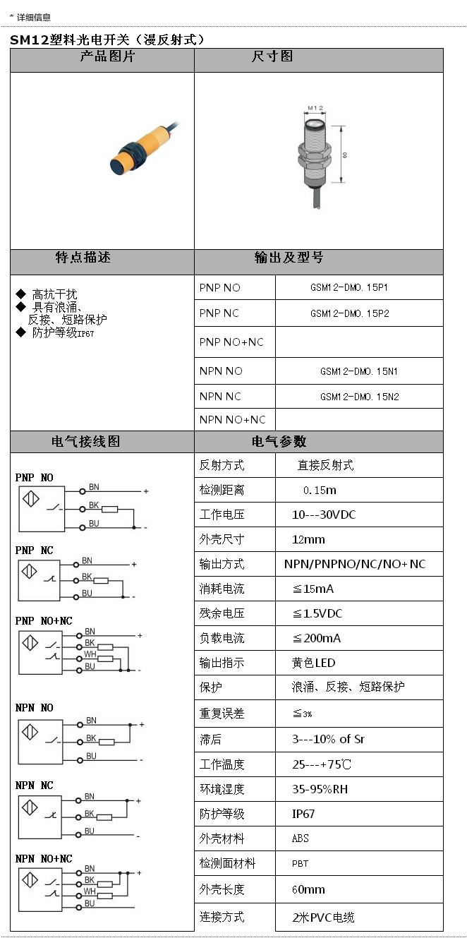 GSM12-DM0.15P1,GSM12-DM0.15P2,GSM12-DM0.15N1,GSM12-DM0.15N2,SM12光電(漫反射)