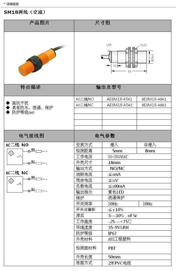 AESM18-A5A1,BESM18-A8A1,AESM18-A5A2,BESM18-A8A2,SM18交流兩線