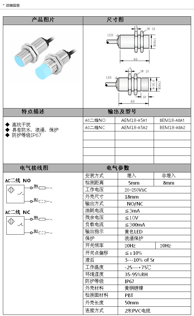 AEM18-A5A1,BEM18-A8A1,AEM18-A5A2,BEM18-A8A2,M18交流兩線
