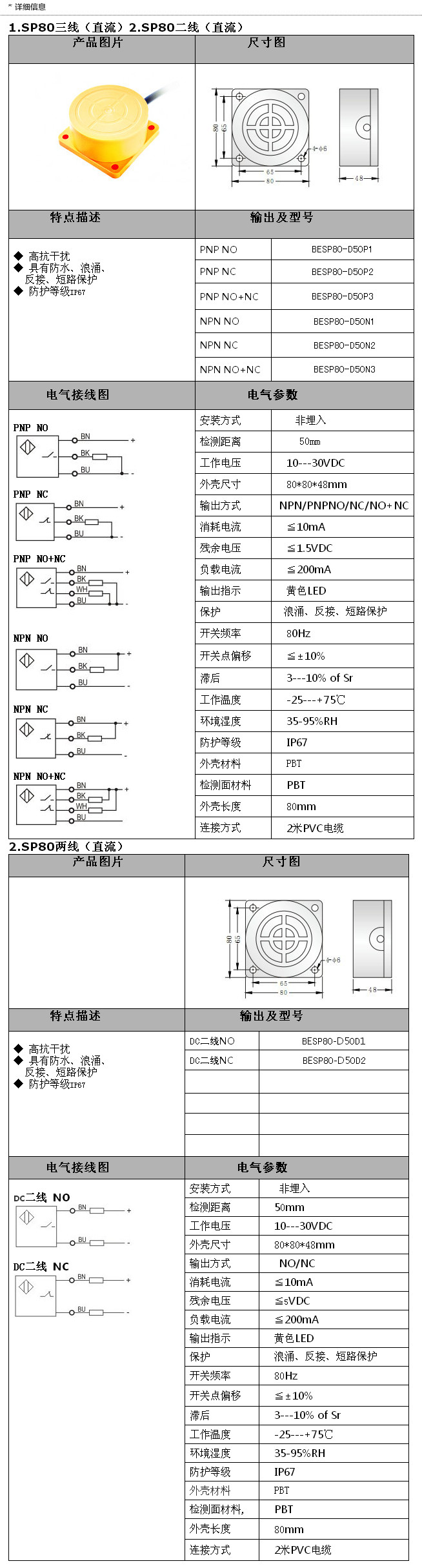 BESP80-D50P1,BESP80-D50P2,BESP80-D50N3,BESP80-D50D1,BESP80-D50D2,SP80直流三二線