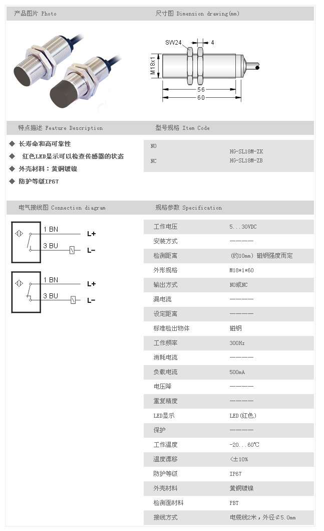 普通型磁性開關(guān) HG-SL18M-ZK,HG-SL18M-ZB,