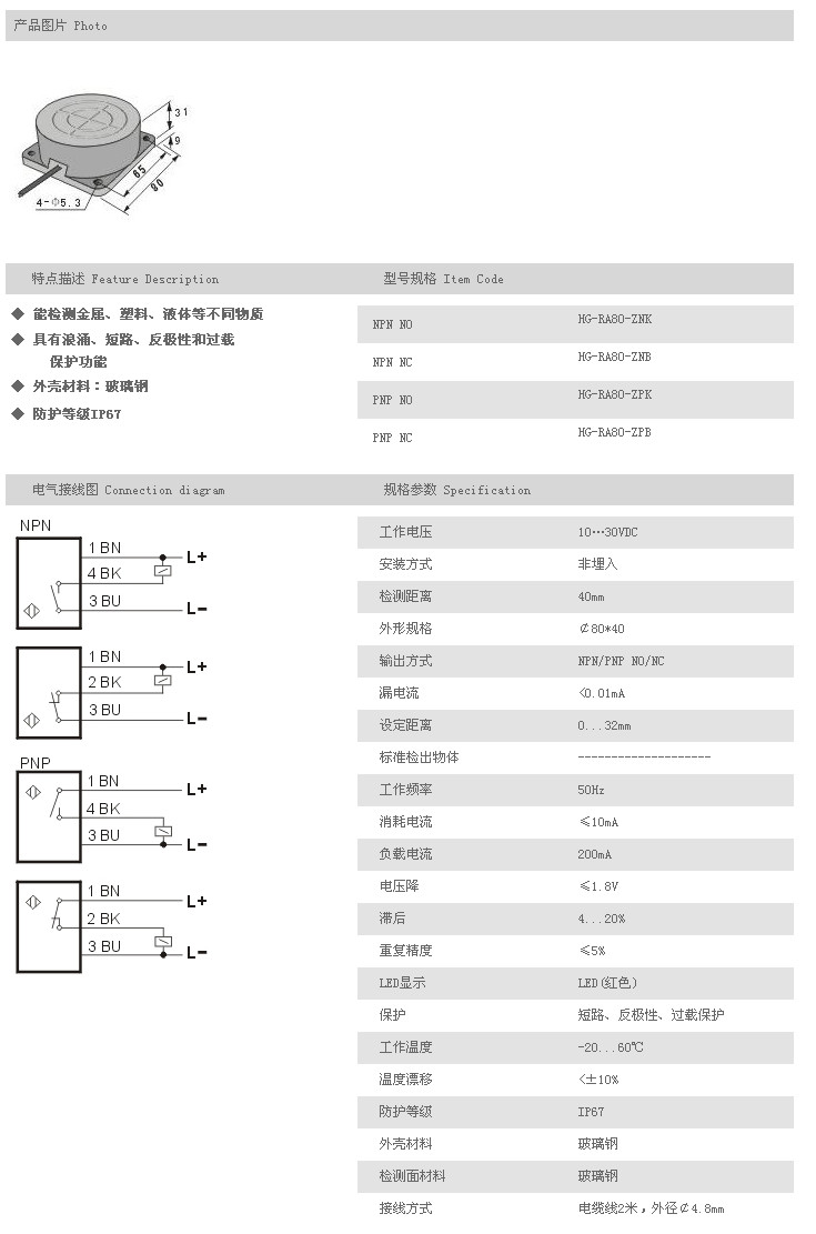 電容式接近傳感器 HG-RA80-ZNK,HG-RA80-ZNB,HG-RA80-ZPK,HG-RA80-ZPB,