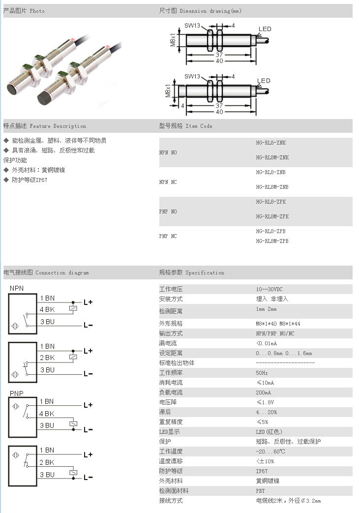 電容式接近傳感器 HG-RL8-ZNK,HG-RL8M-ZNK,HG-RL8-ZNB,HG-RL8M-ZNB,HG-RL8-ZPK,HG-RL8M-ZPK,HG-RL8-ZPB,HG-RL8M-ZP |