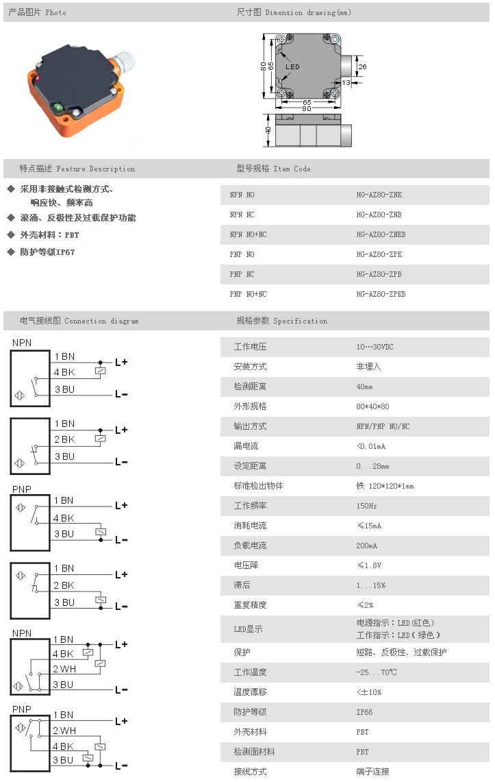 組合型接近傳感器 HG-AZ80-ZNK,HG-AZ80-ZNB,HG-AZ80-ZNKB,HG-AZ80-ZPK,HG-AZ80-ZPB,HG-AZ80-ZPKB,