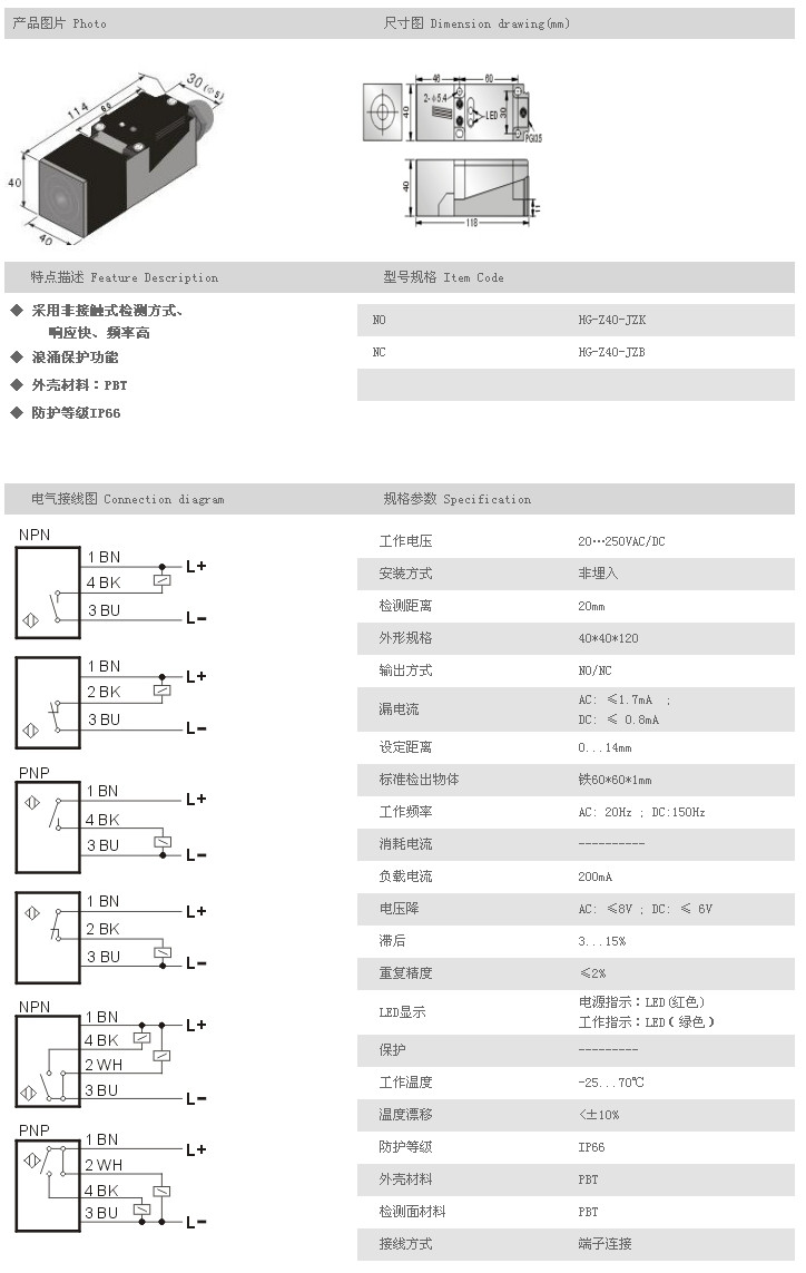 組合型接近傳感器 HG-Z40-JZK,HG-Z40-JZB,