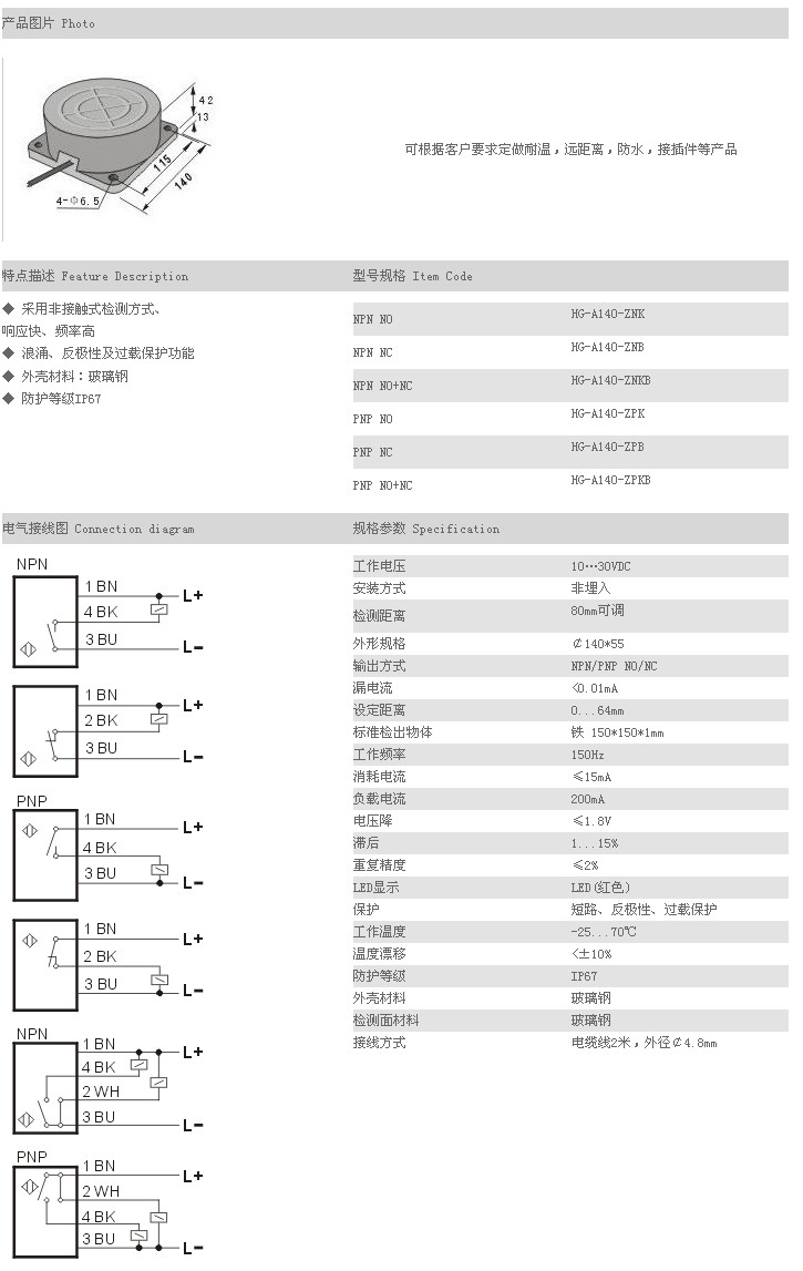 餅型接近傳感器 HG-A140-ZNK,HG-A140-ZNB,HG-A140-ZNKB,HG-A140-ZPK,HG-A140-ZPB,HG-A140-ZPKB,