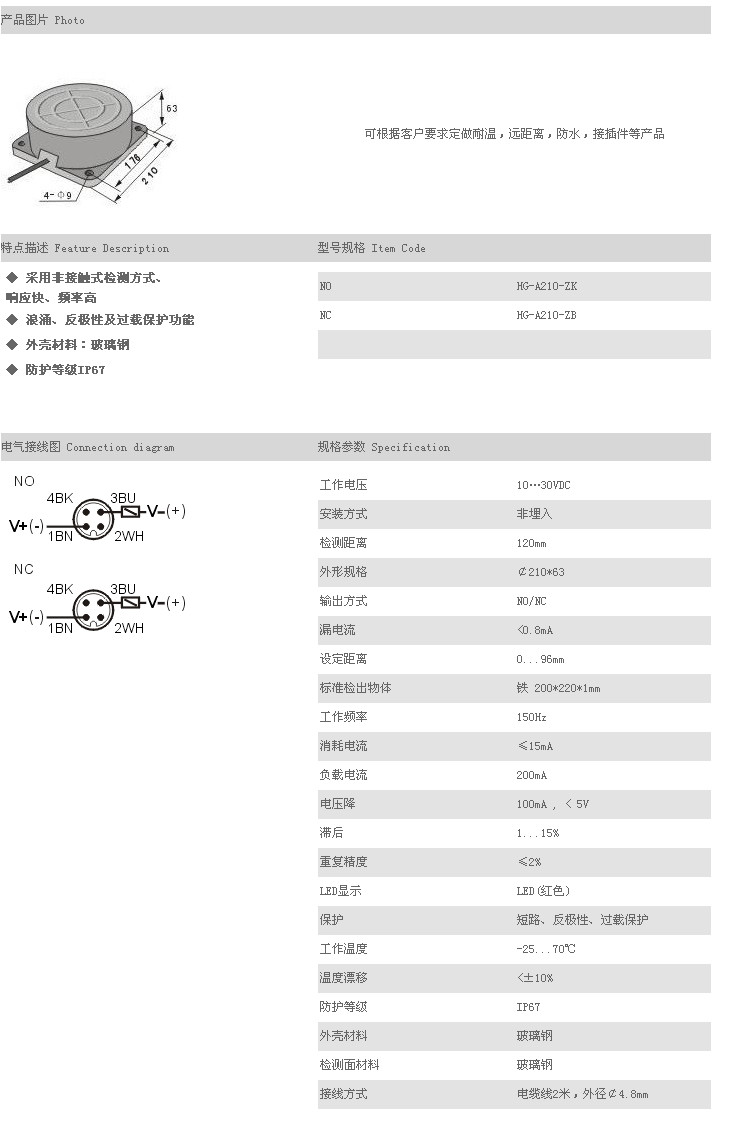 餅型接近傳感器 HG-A210-ZK,HG-A210-ZB,
