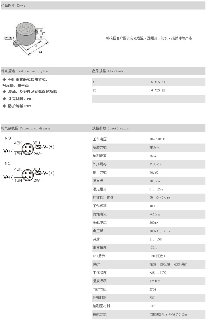 餅型接近傳感器 HG-A35-ZK,HG-A35-ZB,