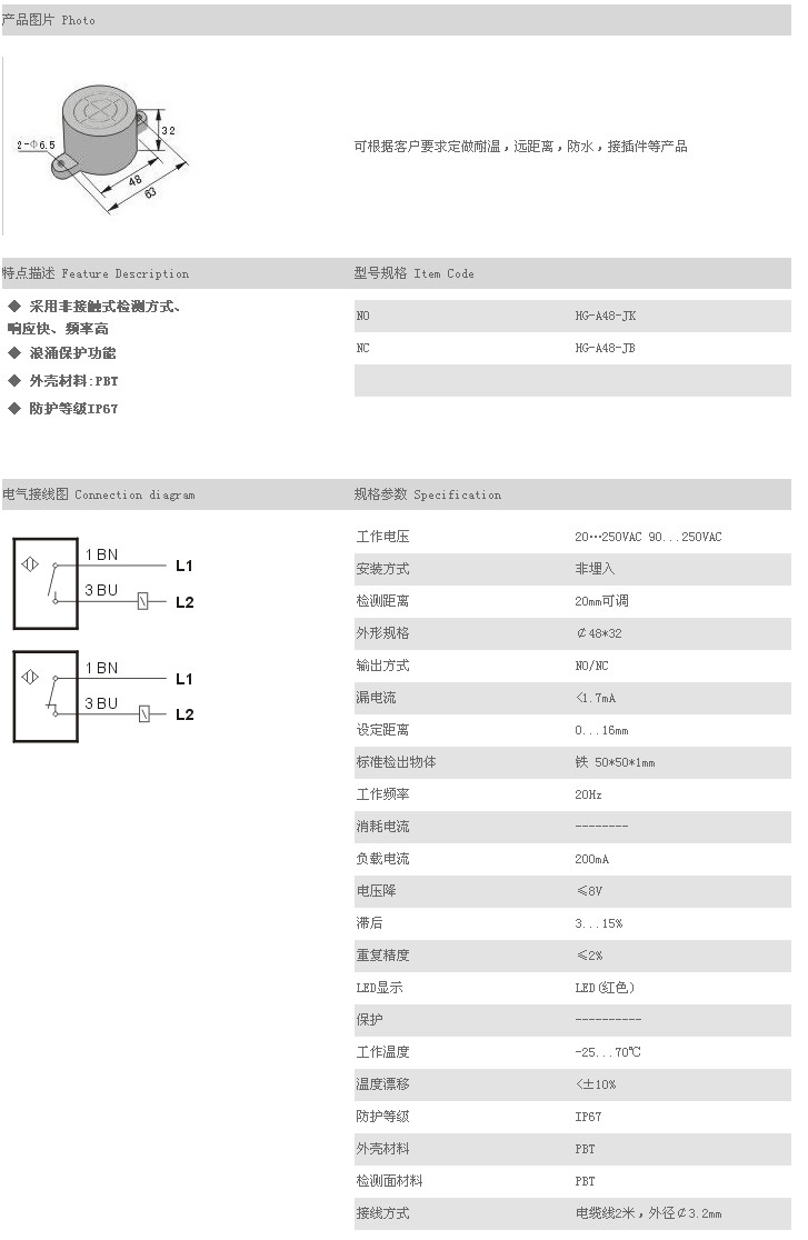 餅型接近傳感器 HG-A48-JK,HG-A48-JB,