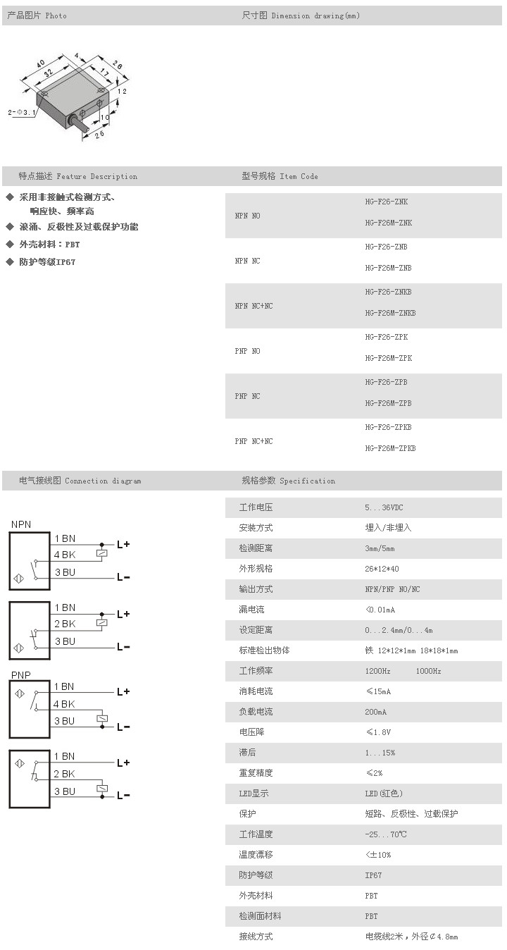 F26方型接近開(kāi)關(guān) HG-F26-ZNK,HG-F26M-ZNK,HG-F26-ZNB,HG-F26M-ZNB,HG-F26-ZNKB,