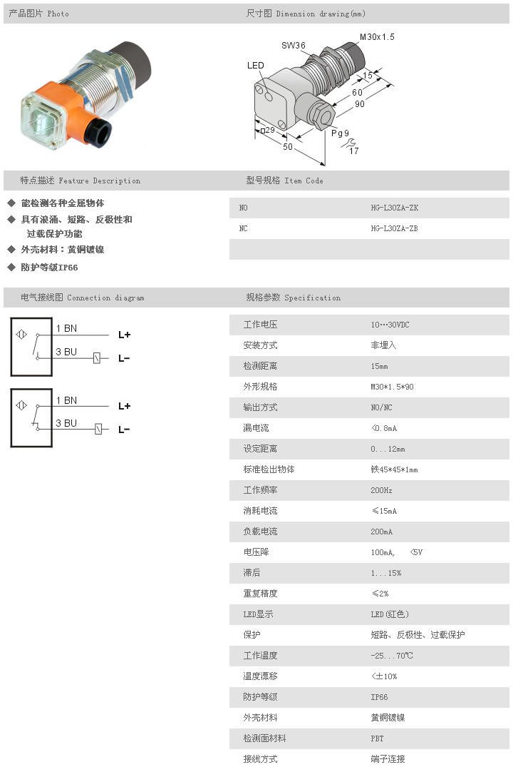 圓柱型接近開關(guān) HG-L30ZA-ZK,HG-L30ZA-ZB,