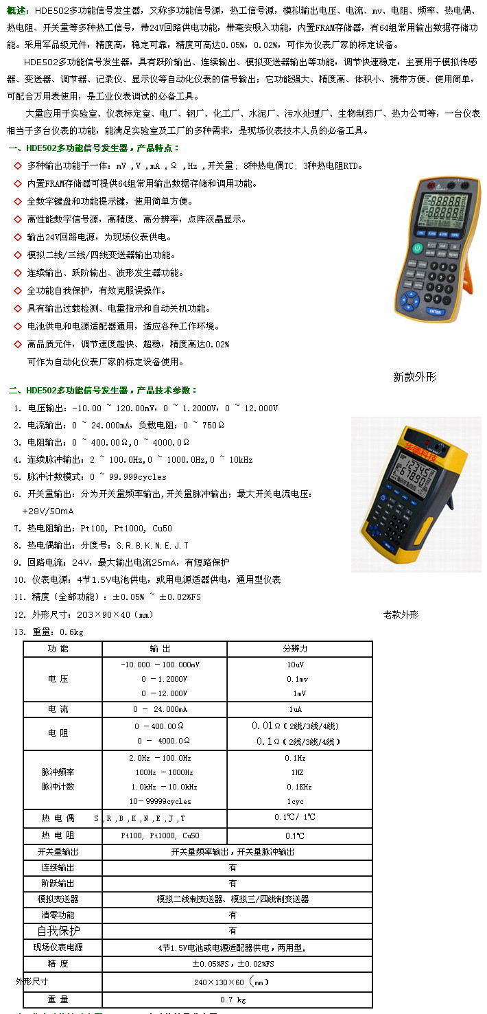 HDE502,多功能信號(hào)發(fā)生器